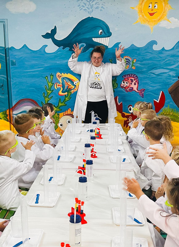 Uwielbiam dzielić się z uczestnikami swoją pasją do eksperymentowania. Dzieci (i nie tylko) mogą w ten sposób rozwijać swoje zainteresowanie nauką oraz świetnie się bawić. W związku z tym stworzyłam, dostosowany do wieku, program pokazów oraz cyklicznych zajęć edukacyjnych, podczas których uczestnicy będą mogli wcielić się w rolę prawdziwych naukowców. Jest to świetna okazja do rozwoju, nauki i zabawy.